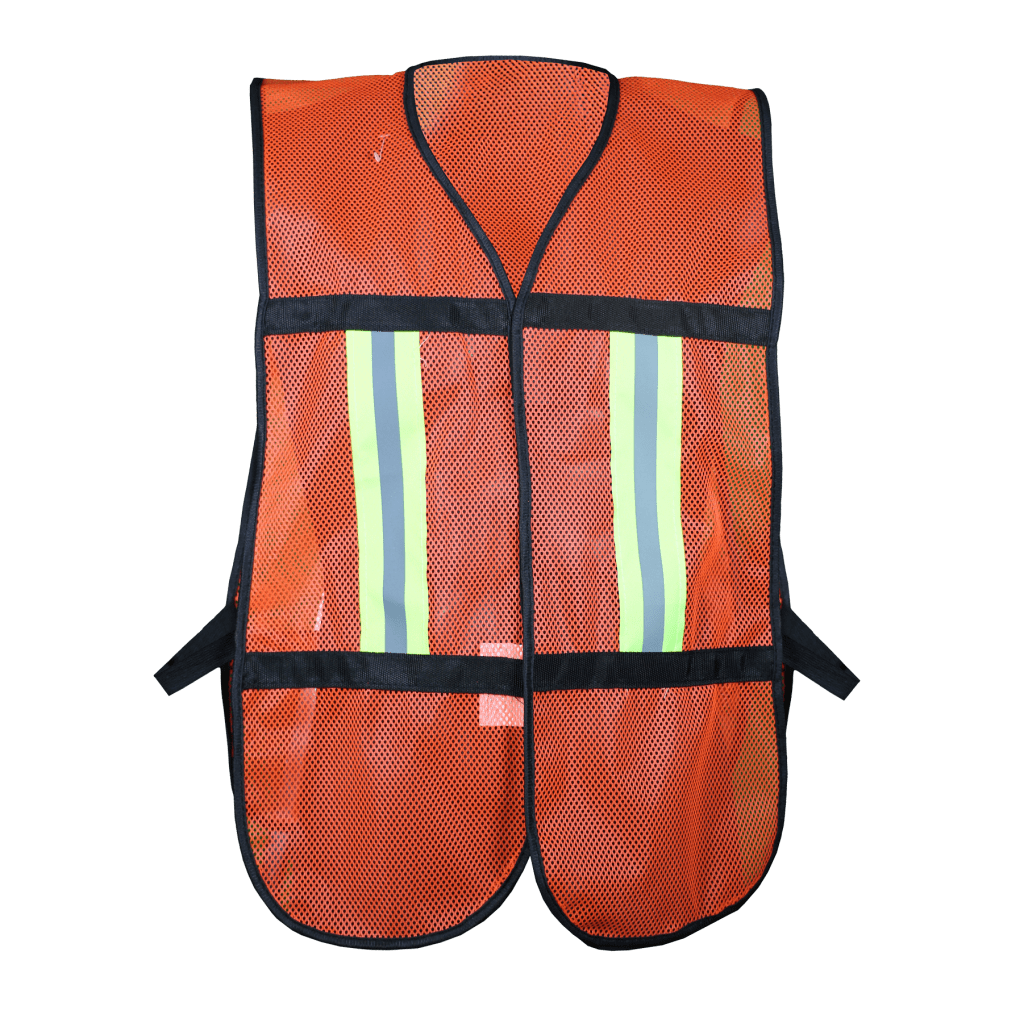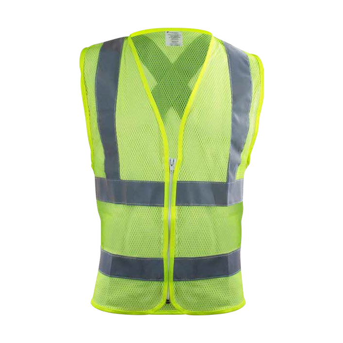 Hi-Vis mesh vest with reflective stripes.