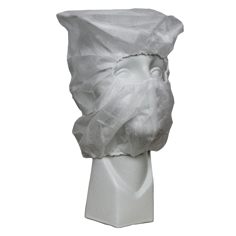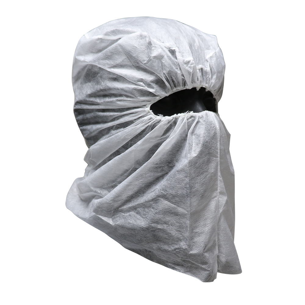 ECOFriendly disposable balaclava with elastic at the neck.